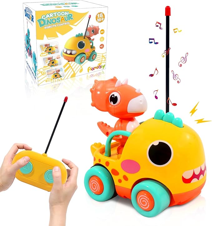 Dinosaur Remote Control Car for Toddler, Cartoon RC Cars with Music & Sound, Kids Toys Age 2 3 4 5, Boys & Girls Christmas Birthday Gift, Dino Car Toys for Boys 3-5 Years Old