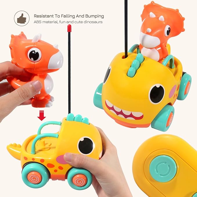 - Race Car Radio Control Toddler Cars:The whole body has a novel appearance,sleek wheels and a cool design,The removable Tyrannosaurus Rex figures can be played in multiple scenes to increase children's fun.Dino Chasers cars for Baby, Toddlers, Children