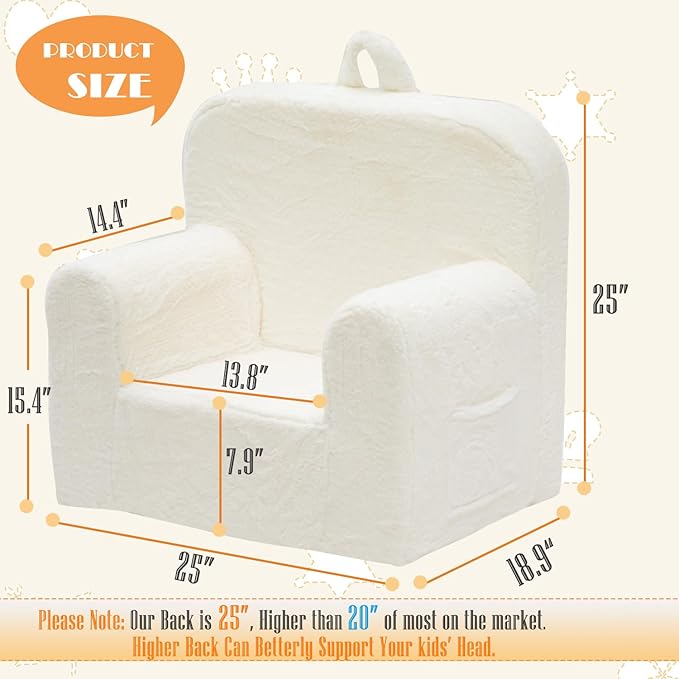 - 🎄【HIGHER 25" BACK TO SUPPORT YOUR KIDS' HEAD】➤ SUFUS Cuddly Toddler Plush Armchair is especially designed with Higher 25" Back for better support for your kids' head when they are reading, relaxing or snuggling. After analysing most customers' comments on similar armchairs, SUFUS decides to increase the height of back to add extra safety