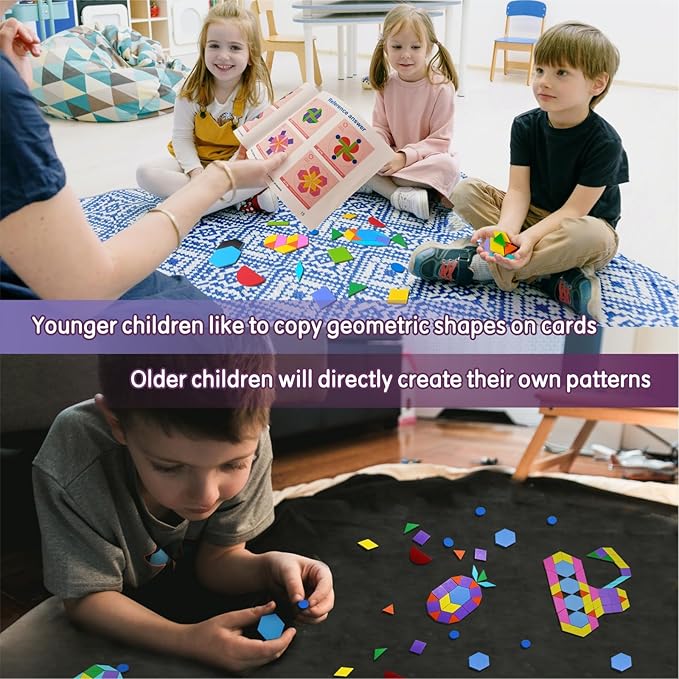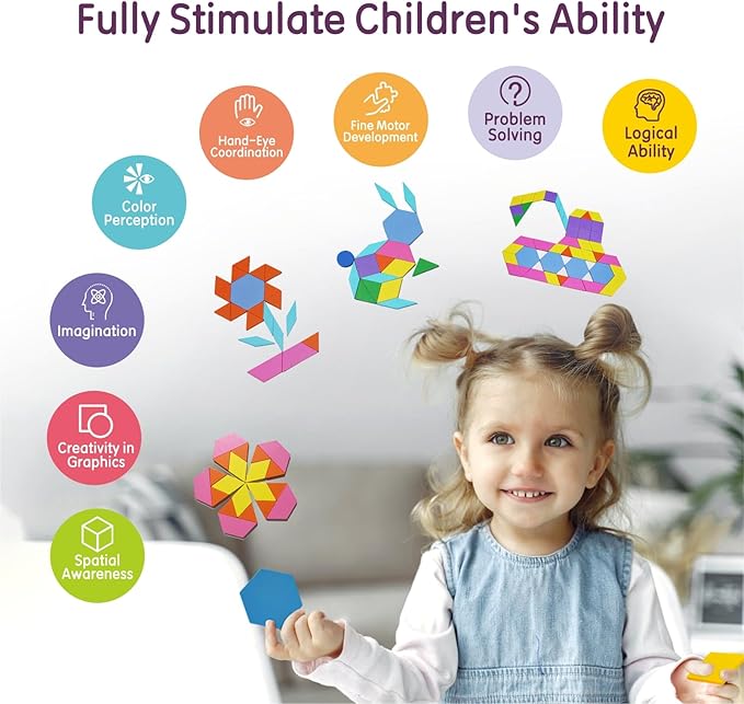 - Learning Toys: The pattern block set come with variety of colors and shapes that spell out various geometric shapes to help children understand concepts such as shape, space, rotation, reflection, lines of symmetry, suitable for classroom & homeschooling