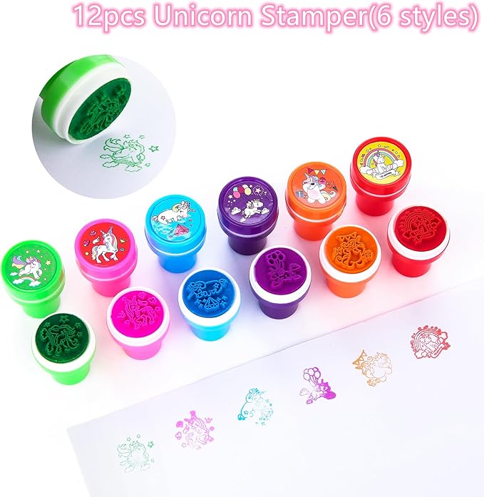 - GREAT VALUE PARTY FAVORS---the package include 84Pcs party favors. Include 12* Unicorn slap bracelets, 12*Unicorn rings, 12* Unicorn keychains, 12*Unicorn themed stamper, 12*Unicorn stamps,24 Styles tattoos for kids, enough for your party.