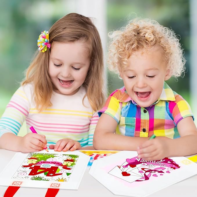 - DIY Coloring Bag: the coloring goodie bags are designed in Valentine's Day theme, romantic and cute; The bold lines guide coloring and allow children to color with crayons and colored pencils (not included), also nice for training their color matching ability