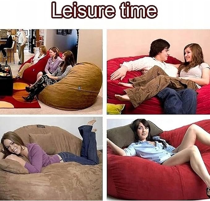 - 5ft=130*60CM(Capacity:1-2 people ); 6ft=150*75cm (Capacity: 2-3 people ); 7ft=180*90cm (Capacity: 3-4 people) ; (Measurements are taken from an unfilled bean bag.) Package Included: 1 x Sofa Bean Bag Cover (NO Filler) Perfect for sprawling out on your own in living rooms, dorm rooms, rec rooms and bedrooms.(ONLY COVER, NO FILLER )