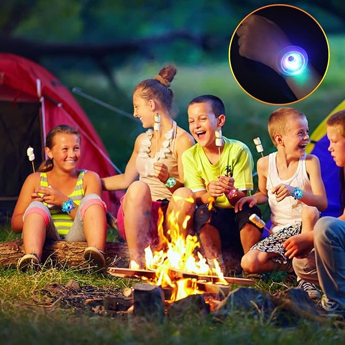 - These party favors for kids goodie bags comes with 12 pack led light up bracelet, all these party favors are multiple random colors and various styles.It is a combination of bracelet,led lights and fidget spinner toy.Sparkling LED can light up the night around you at party.