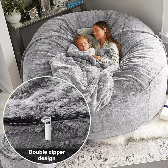 - [SOFT & COMFY] - Our oversized furry beanbag chair cover offers ultra-soft and warm touch for you, the faux fur cover is made with double stitched seams and double zipper for maximum comfy and durability. It's soft to touch, machine washable and discoloration for easy maintenance.