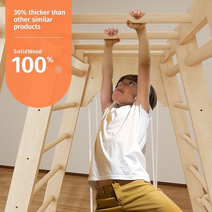 - 【Safer to Use, 100% Natural Wood】Our indoor playground for toddlers 1-8 is built with purely natural wood, the product body does not contain plastic materials harmful to the body, undergoes strict quality testing, and has received a CPC (ASTM & CPSC certification) certificate. Toddler indoor playground focus on sustainability and thoughtful details, please enjoy their smooth, burr-free Appearance