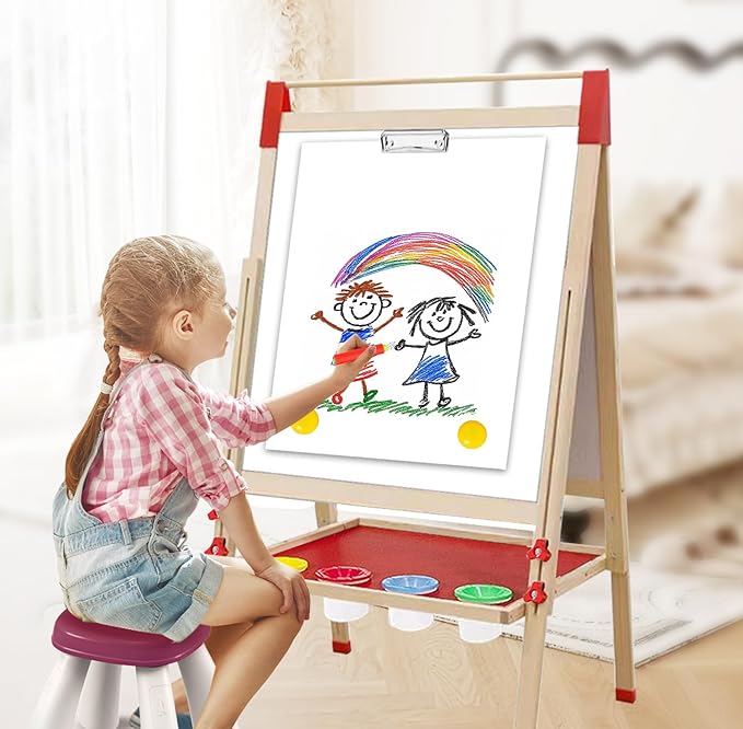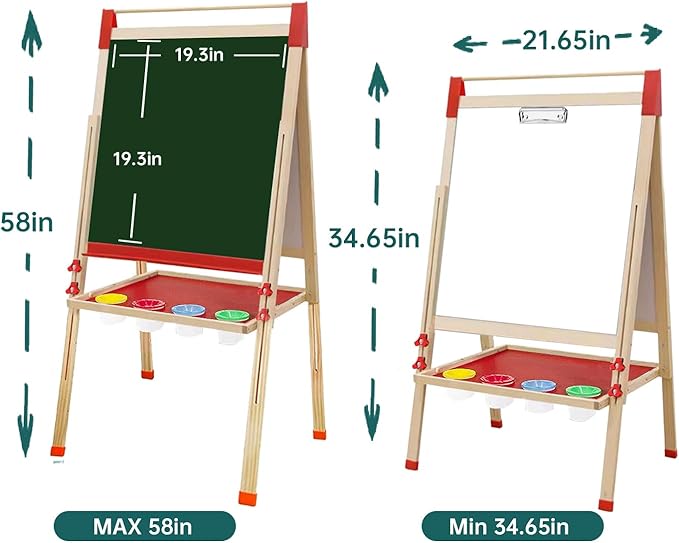 - Sustainable and Safe: Crafted from non-toxic and eco-friendly materials, our wooden art easel ensures a safe and healthy creative environment for your child. The use of sustainable wood not only promotes environmental consciousness but also guarantees durability, allowing your child to enjoy countless hours of artistic exploration while minimizing the impact on the planet.