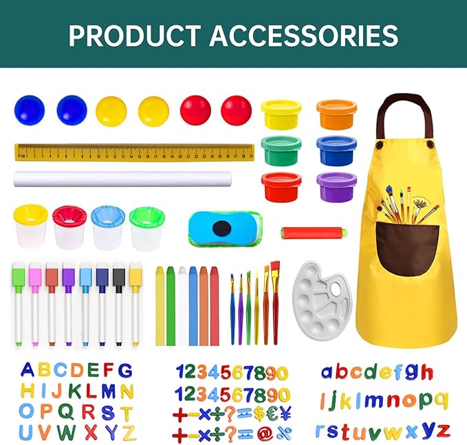 - Creative Play: The included magnetic letter and number set, finger painter accessories, roll of paper, chalk, and watercolor pens further enhance the creative experience, offering a diverse range of mediums to inspire imaginative play and foster educational growth.