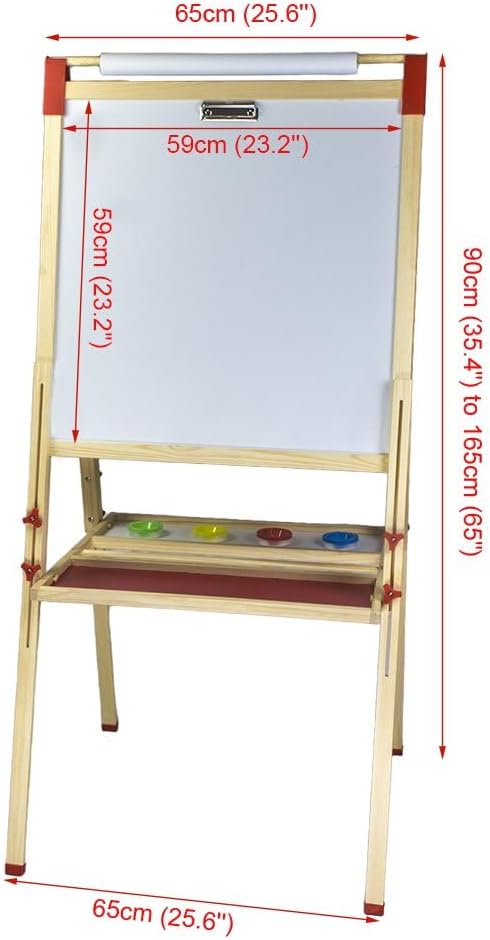 - 𝗔𝗗𝗝𝗨𝗦𝗧𝗔𝗕𝗟𝗘 𝗛𝗘𝗜𝗚𝗛𝗧 The legs are easily height adjustable, from 90cm (35.4") to 165cm (65"), making it the perfect standing easel for children of all ages, from a toddler easel to a 16-year-old easel.