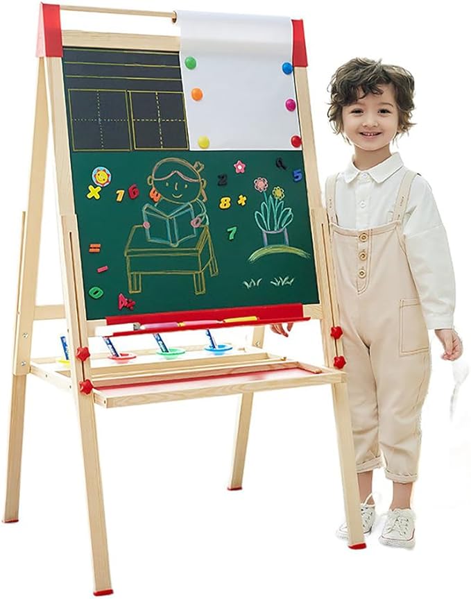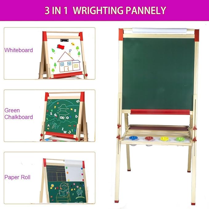 - 3-IN-1 – This kids painting easel features a magnetic chalkboard easel for kids on one side, a kid's magnetic white board on the other side; And 1 paper roll is available for two little artists at the same time.
