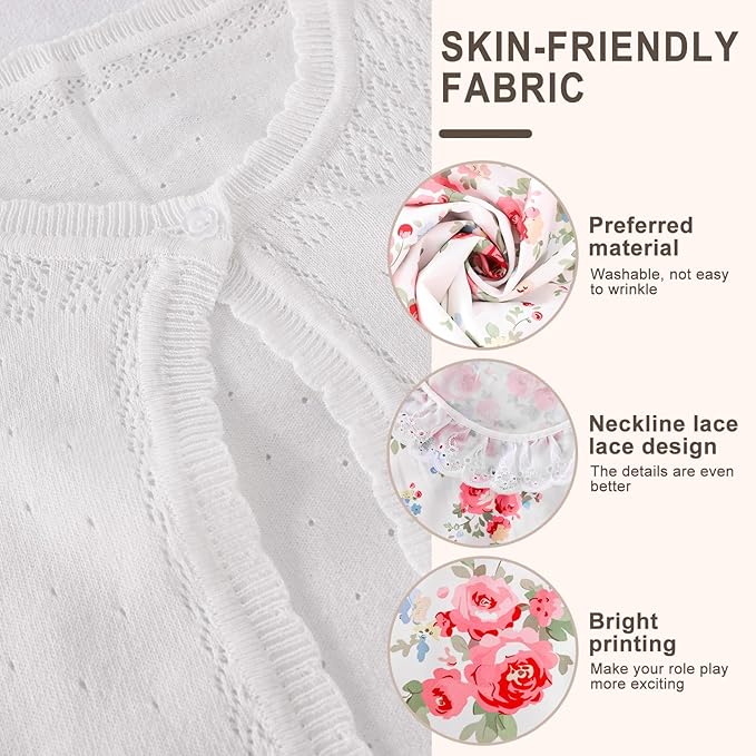 - 13 Pieces Old Lady Cosplay Costume Set: 1 x Dress, 1 x Knit cardigan, 1 x Socks, 1 x Cane, 1 x Brooch, 1 x Wig, 1 x Wig cap, 1 x Necklace, 1 x Bracelet, 1 x Earrings, 1 x Handbag, 1 x Glasses, 1 x Glasses chain.