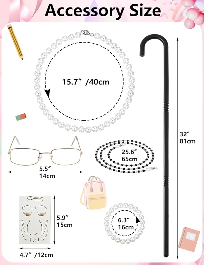 - Comes with High-Value Accessories: We aim to provide you with a one-stop selection of the 100th day of school old lady kids costume. Specially paired with cost-effective accessories for your girl’s granny costume, just for your girl to stand out among peers.
