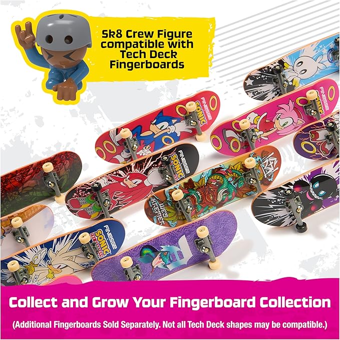 • SK8 CREW: Learn and progress your finger skateboard skills with the Sk8 Crew figure, made for young hands who want to learn about skateboarding Snap them to the fingerboard to recreate real skateboarding tricks, mastering ollies, power slides, + more