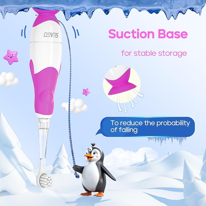 SEAGO Toddler Electric Toothbrushes for Baby Ages 0-3 Years, Baby Toothbrush with Smart Timer and Suction Base, 4 Replacement Brushheads (Purple-C)