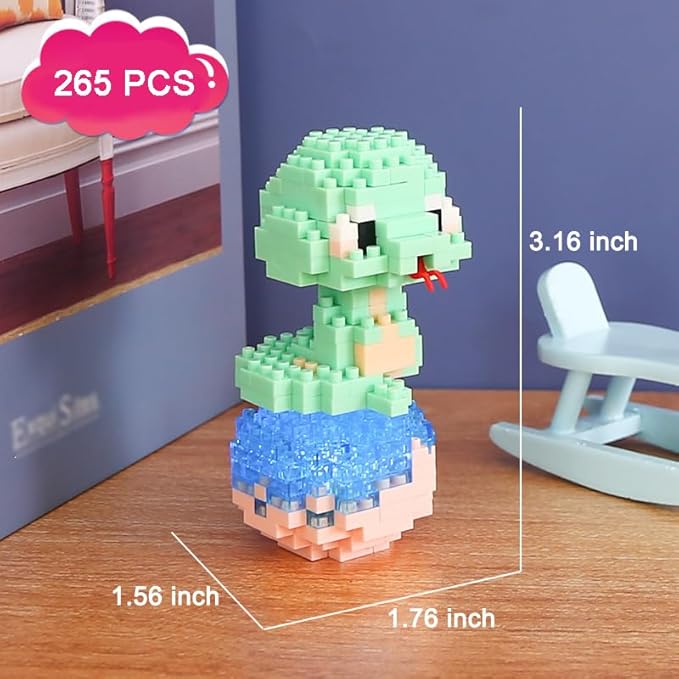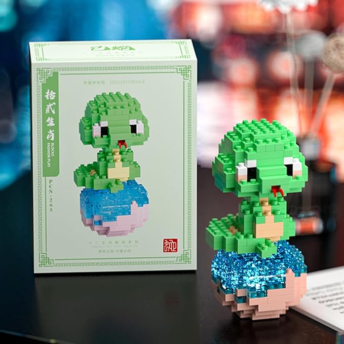 12 Mini Animals Building Blocks Sets Building Block Party Favor for Kids Small Zodiac Animals Pets Horse Dog Monkey Tiger Rabbit Dragon STEM Educational Toys for Boys Girls(Snake)