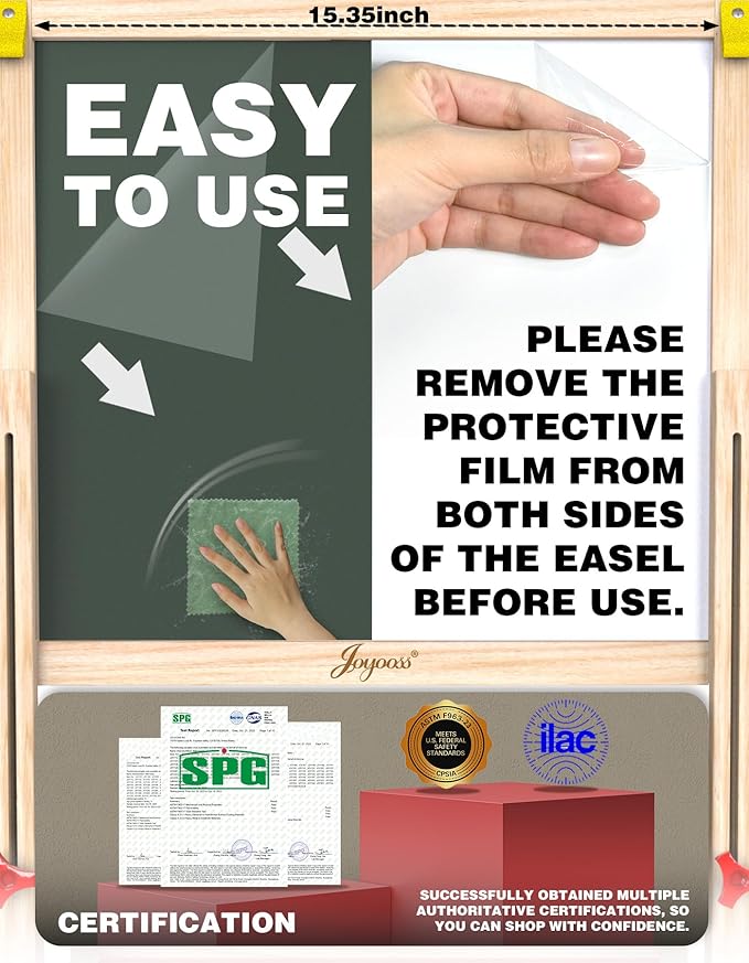 - 【SAFETY MATERIAL】The Art Easel for Kids Easel is made of high-quality pine wood, ensuring stability and durability, and can withstand years of play. The kids art easel's smooth wood without burrs and rounded corners are safe for infants. The Toddler Art Easel is a fixed accessory on each side of the easel to increase its stability.