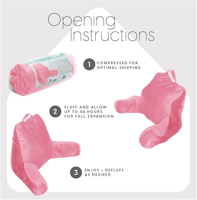 Milliard Reading Pillow with Shredded Memory Foam, Large Adult Backrest with Arms, Back Support for Sitting Up in Bed with Washable Cover (Sit up Pillow) Pink