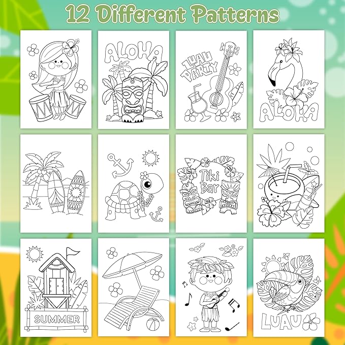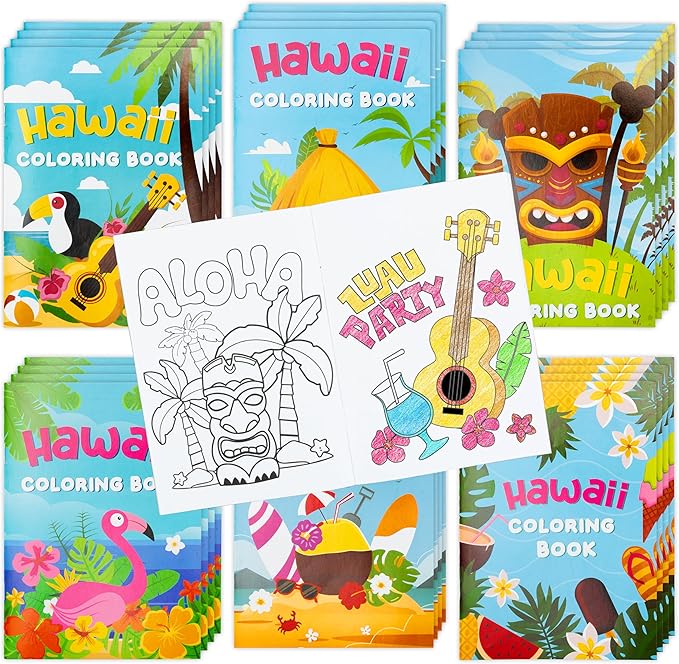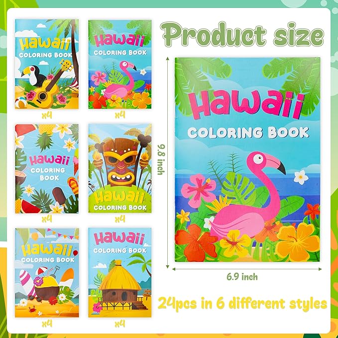 - Summer Hawaii Coloring Booklets--The package comes with 24pcs Summer Hawaii coloring books in 6 styles(Each style 4pcs), 4 copies of each style, and interior pages have 12 different pictures of summer theme pattern to color. You will have enough choices and can select shapes what you love to painting.