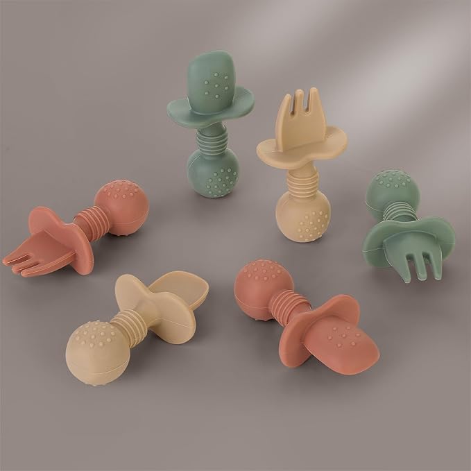 6 Pack Baby Spoons and Forks Set, Silicone First Stage Self Feeding Infant Toddler Utensils, BPA Free, Baby Led Weaning Feeding Supplies for Baby Essentials
