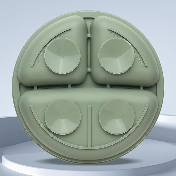 • Divided Suction Plates for Baby: Our toddler plates feature divided compartments in different sizes, perfect for parents to dispense different flavors of food. The kids plates 4 strong suction cups on the bottom of the plate, evenly distributed, we put the plate on smooth surfaces, especially high chairs and trays, it stays in place throughout the meal, a baby feeding essentials!