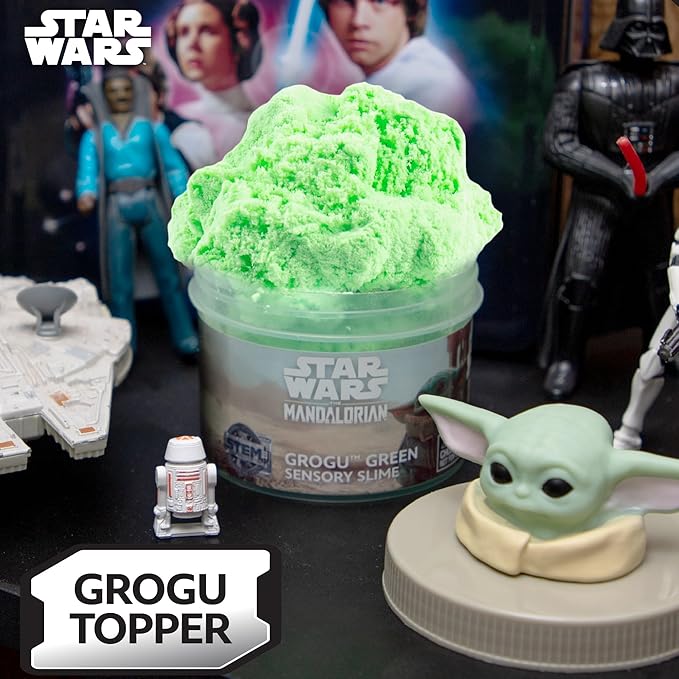 - COLLECTIBLE: Crowned by the galaxy’s cutest companion Grogu, the jar transforms into a display piece that not only contains slime but captures the heart of Star Wars fandom — it’s a must-have!