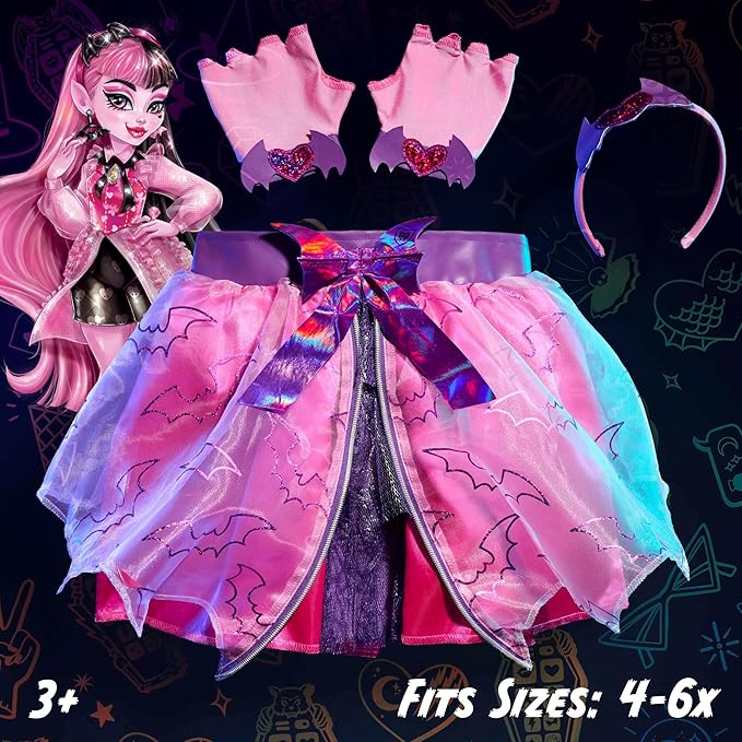 Monster High Draculaura Fashion Tutu Set Amazon Exclusive, 3-Pieces, 4-6X, Dress Up and Pretend Play, Pink, Kids Toys for Ages 6 Up by Just Play