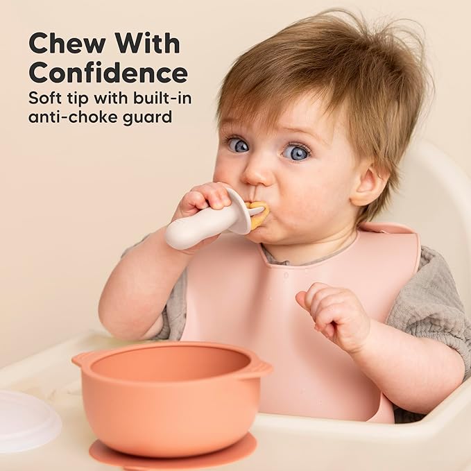 - Baby-Safe Design - Crafted for tiny hands, these baby food utensils are suitable for infants 6-18 months. The built-in anti-choke barrier & ergonomic grip handle allow your baby to explore new foods safely, perfect for the first stage BLW.
