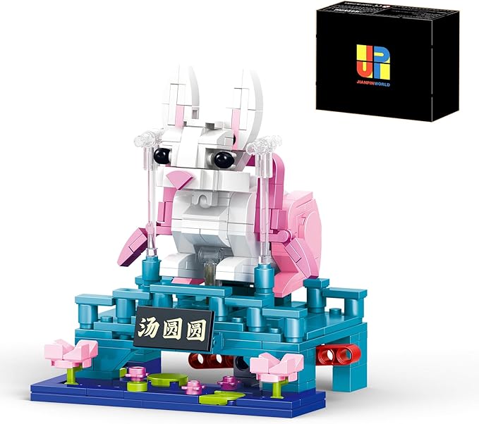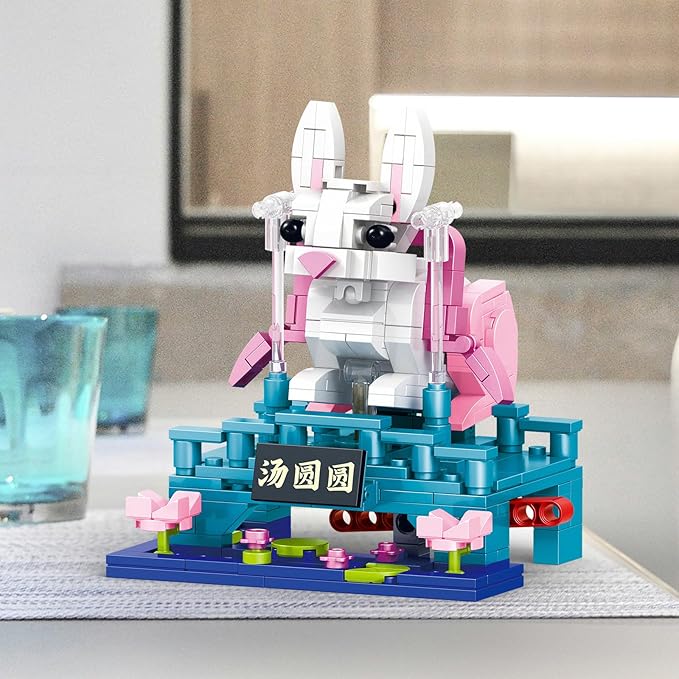 Chinese Yutu Building Block Set, Small Cute Animals Jade Hare/Rabbit Home Decor,STEM Educational Toys Chinese Traditional Culture Theme for Kid Boy Girl Adult 331 Pcs With Ear Swinging 96006