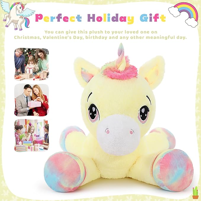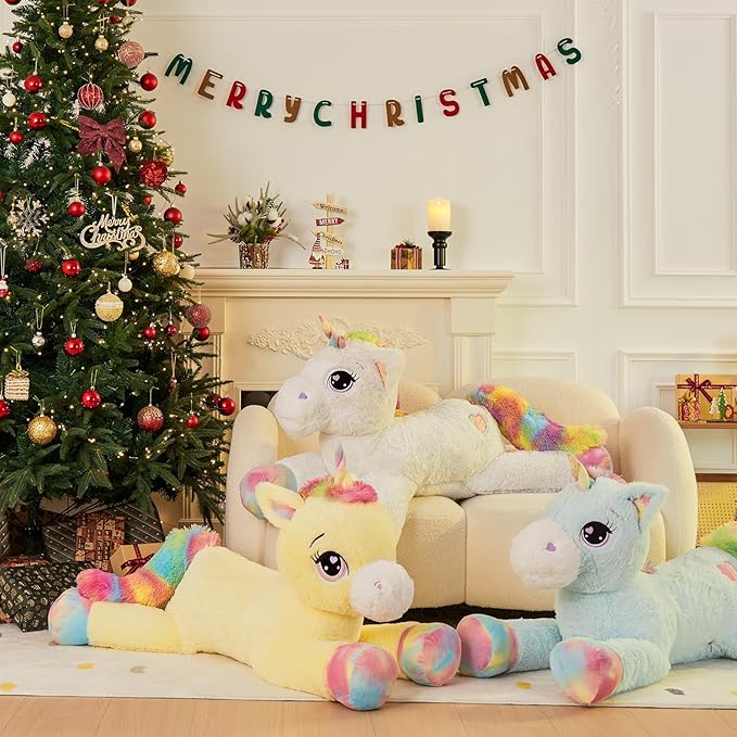 - Perfect Unicorn Gift: Everyone likes lovely giant stuffed animal. You can give this soft unicorn plush to your loved one on Christmas, Valentine's Day, birthday, Thanksgiving, Children's Day and any other meaningful day. It will be an unforgettable gift