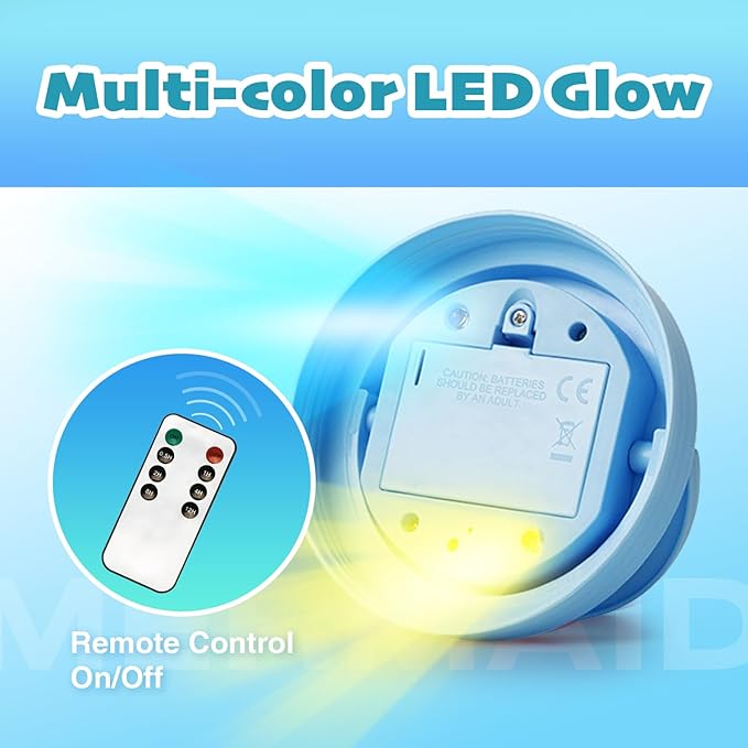 - Let It Glow: Sparkling crystals emit colorful glow that attracts your child's attention, creating a magical mermaid night light, our remote control comes with a timer function that can be turned off automatically according to your child's sleeping habits