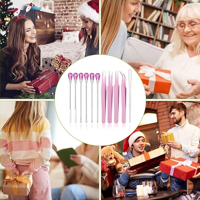 - 【11 Pcs Cute Resin Tools】: Our metal resin stir sticks includes 2 pcs stir sticks, 2 pcs resin spoons, 2 pcs poke needles, 4 pcs epoxy resin tweezers and 1 pc transfer pipette. These uv resin tools are totally enough for your daily needs and use. They will be your practical assistants in DIY resin work. NOTE:If the pink gems are loose. A simple twist and they are fine.