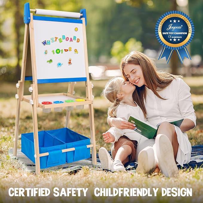 Joyooss Art Easel for Kids Easel for Toddlers, Kids Art Easel Magnetic Whiteboard & Chalkboard Adjustable Standing Wooden, Art Easel for Kids Age 4-8 9-12 Easel Kids Easels for Toddler Art Easel