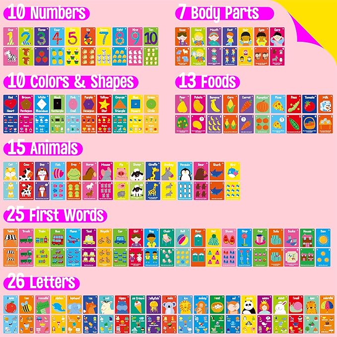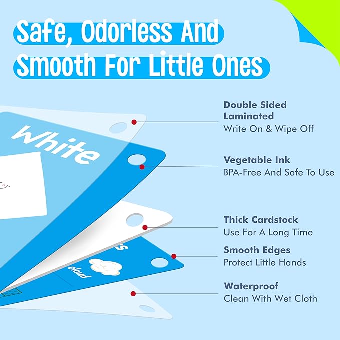 - Well Made: The card adopts sturdy and thickened cardstock with PET film on both sides, durable and tear resistant. Printed with premium non-toxic vegetable oil-based ink, BPA-free and safe for kids to use. Bright colors and cute designs catch kids’ eyes and evoke a sense of excitement and joy. When children are surrounded by these colorful flashcards, they are more likely to be engaged and interested in what they are learning.