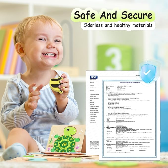 - SAFE PUZZLES for TODDLERS - Non-Toxic and Eco-friendly sturdy wood material meet USA toy standards. The wooden puzzles had passed PROFESSIONAL ASTM & CPSIA TEST