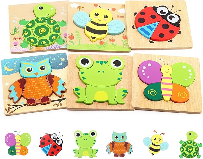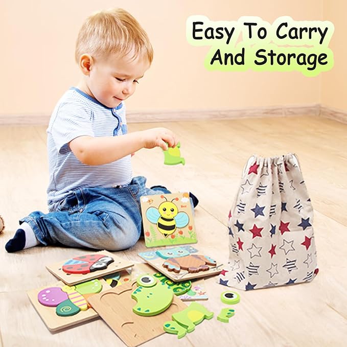 Wooden Puzzles for Toddlers 2-4, 6 Pack Animal Puzzles for Age 1-3, Montessori Educational Toy for 1,2,3,4 Years Old Boys and Girls, Baby Toys Gifts Package Storage