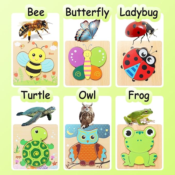 - COLORFUL MONTESSORI LEARNING TOY for TODDLERS- Bright vibrant colors and cute shapes make it is easier for kids to remember the outline of the animals . Easy to develop kids' grip strength, cognitive ability, observation ability, motor skills and hand-eye coordination