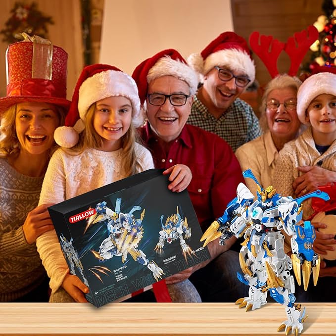 Mech Building Blocks Action Figure Toys, 2in1 White Tiger Transforming Robot Building Set, Converts to Tiger Model, for Adults Kids Boys Ages 8+(515 Pieces) (White Tiger)