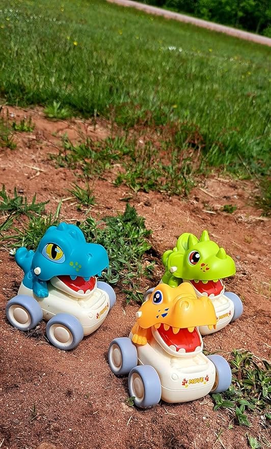 - Funny Press and Go Cars: Our 3 unique animal toy cars are easy and enjoyable for young children to play with. No batteries are required, just press down on the dinosaur car's head and watch it run! Easy to play, let the races begin! They are great learning toys for ages 0-2 boys and girls to improve their motor skills.