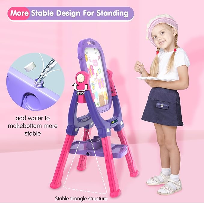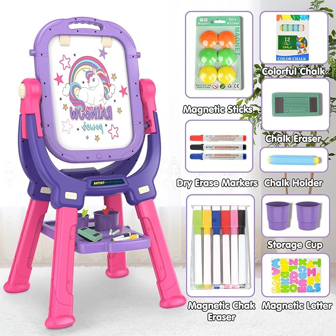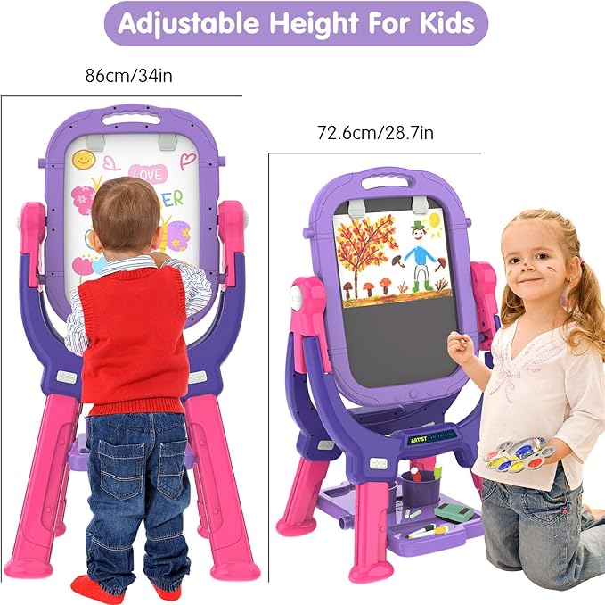 - Educational and Development - Toddler Art Easel is more than just a toy; it's an excellent tool for nurturing creativity,drawing and writing on the board improve hand-eye coordination and cognitive development. It also supports self-expression, problem-solving, and concentration in kids.