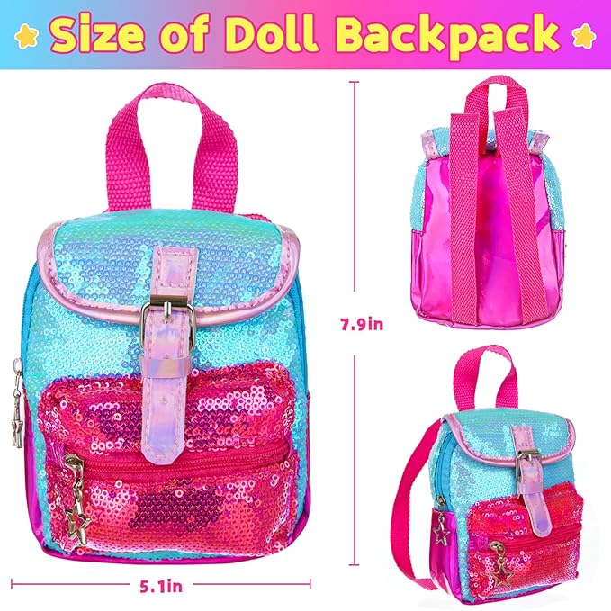 - Cute 18 Inch Doll Accessories: Realistic and interesting 18 inch girl doll accessories set will bring a lot of fun and happiness to our little girls.The cute 18 inch girl doll backpack is so compact and portable. It can help kids store some 18 inch doll clothes and accessories.
