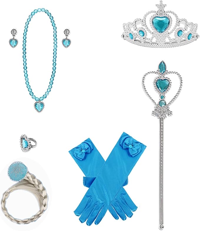 • Girls Princess Dress Up Set: This enchanting princess cape set includes a princess cape, princess crown tiara, princess magic wand, princess gloves, wig,bracelet, ring, necklace, and clip-on earrings. Your little girls will have a wide range of accessories to create their own princess look.