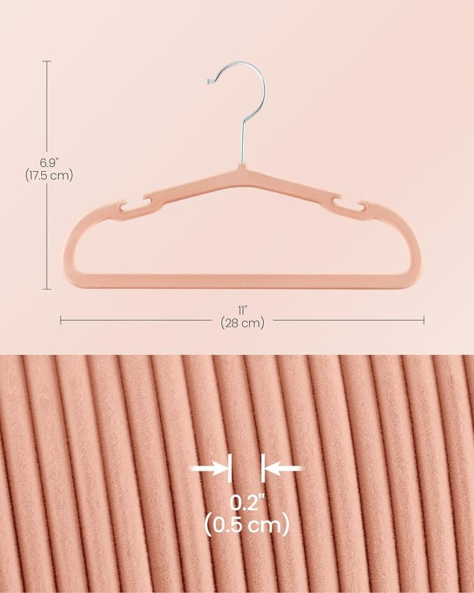 SONGMICS Baby Hangers 50 Pack, 11 x 6.9 Inches, Kids Hangers for Closet, Non-Slip Velvet Hangers, Childrens Hangers, Space-Saving Clothes Hangers, Wide Shoulder Notches, Coral Pink UCRF037R01
