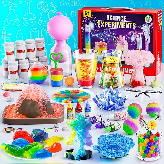 - 【ENDLESS FUN 110+ SCIENCE KIT】 This science experiments kit includes over 110 experiments - volcanic eruption, making water sprites, magic bouncy ball, crystal growing, rain of colored pearls, liquid stratification, etc. Help your kids foster an early love for science, and make your kids a little scientists.
