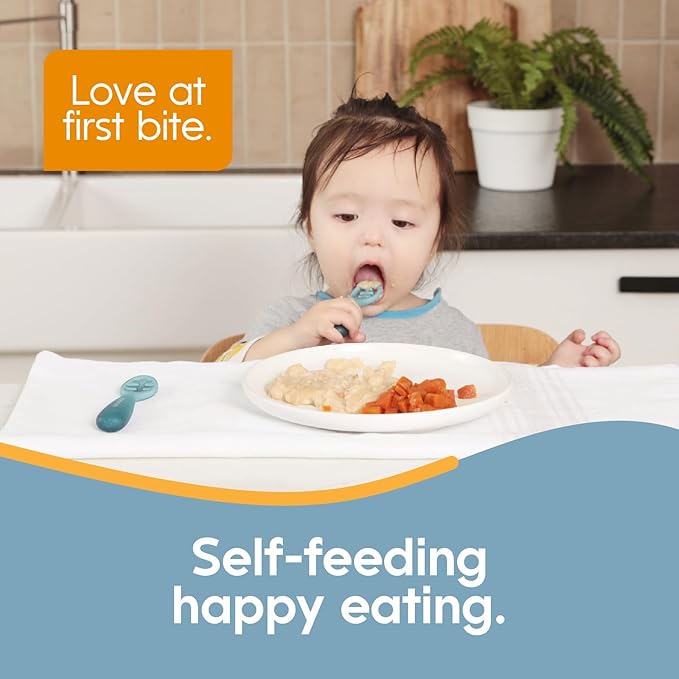• FEEDING FOR THIRD STAGE: The set includes 2 stage three baby spoons that feature a bowl-shaped, textured design, catering to different food consistencies. The “Smart Scoop Spoon” has special grooves perfect for picking up and enjoying solid foods like meatballs, while the “No-Spill Spoon” features a bowl-like head that’s ideal for mess-free meals with liquids like soups. Both spoons are crafted to encourage small bites, tongue lateralization, and wrist rotation, supporting your child’s self-feeding journey.
