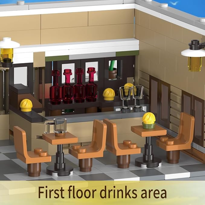 City Restaurant Building Blocks Set with LED, 1230Pcs Mini Brick Architecture Toy for Adults and Teen 14+ (Not Compatible with Lego)