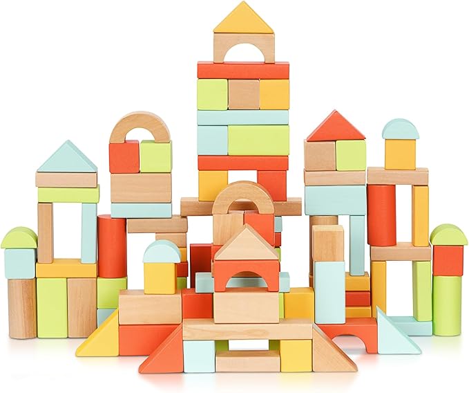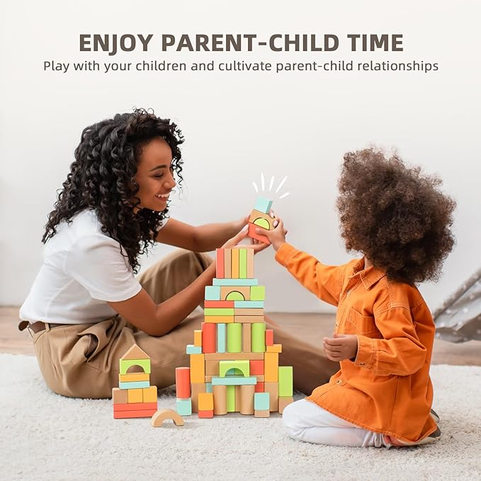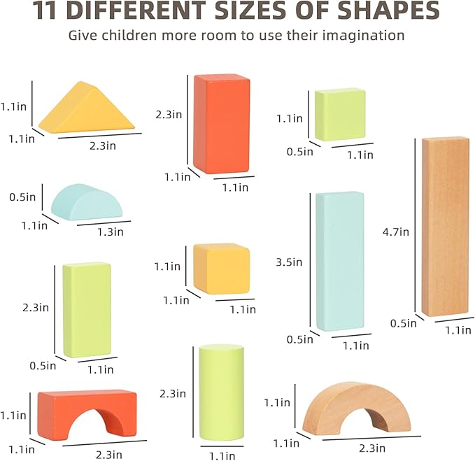 - Safe for Toddlers - The building blocks for toddlers 3-5 are made of solid wood with water-based paint, colorful and safe. Each block comes with rounded edges and smooth surfaces. Larger block sizes keep kids safe from choking hazards