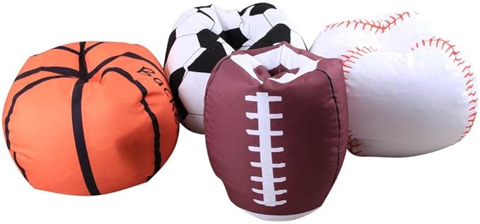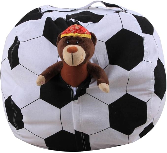 Storage Bean Bag Chair 18 Inch Beanbag Cover with Zipper for Kids Plush Toys Game Play (Football)