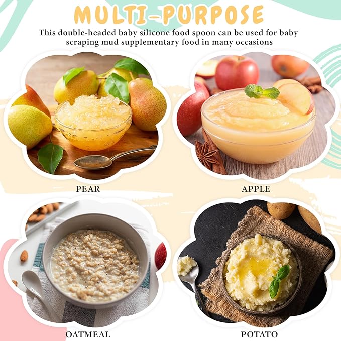 - Multifunctional Design: the baby food spoon is designed with double ends, including 1 soft silicone spoon head for baby food feeding and 1 stainless steel scraper head for fruit scraping, the zigzag scraper is smooth and safe to use for babies