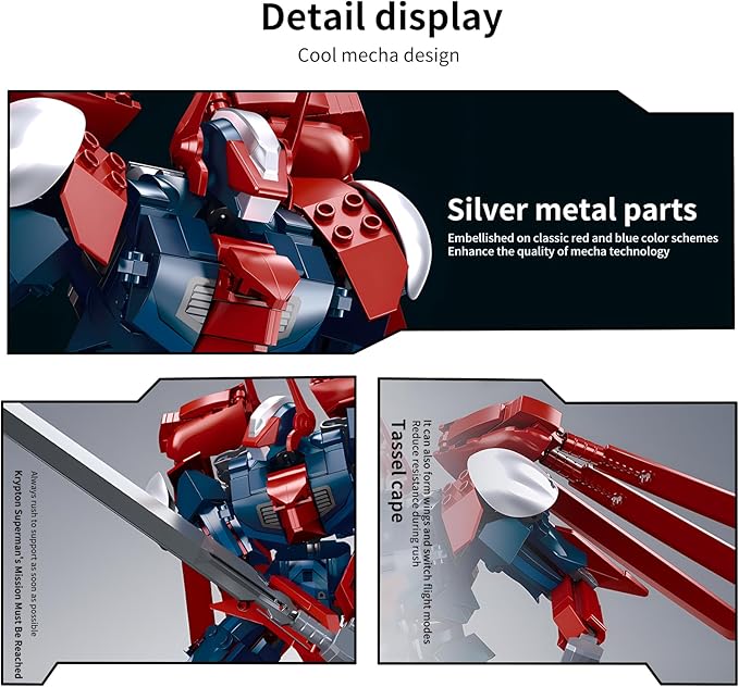 - 【Exquisite design and high playability】The mecha is a perfect combination of red and blue building blocks, showcasing a unique visual charm. The full body multi joint design allows the mecha to twist and exhibit various postures. Equipped with movable wings, it increases the fun of assembly and can be combined with other building blocks to form different shapes, satisfying the player's creative desire.