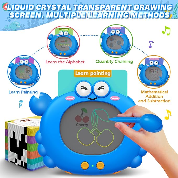 • Adorable Crab Design: Shaped like a cute crab, this toy makes learning extra fun! The right pincer detaches and becomes a pen for writing, adding a playful interactive element.
